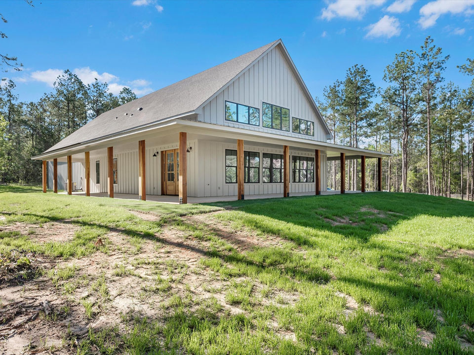 The Abbey is a luxurious barndominium perfect for country living. This floor plan includes a 1,453 sf attached garage/barn and a beautiful wrap around porch for viewing those quiet country sunsets.